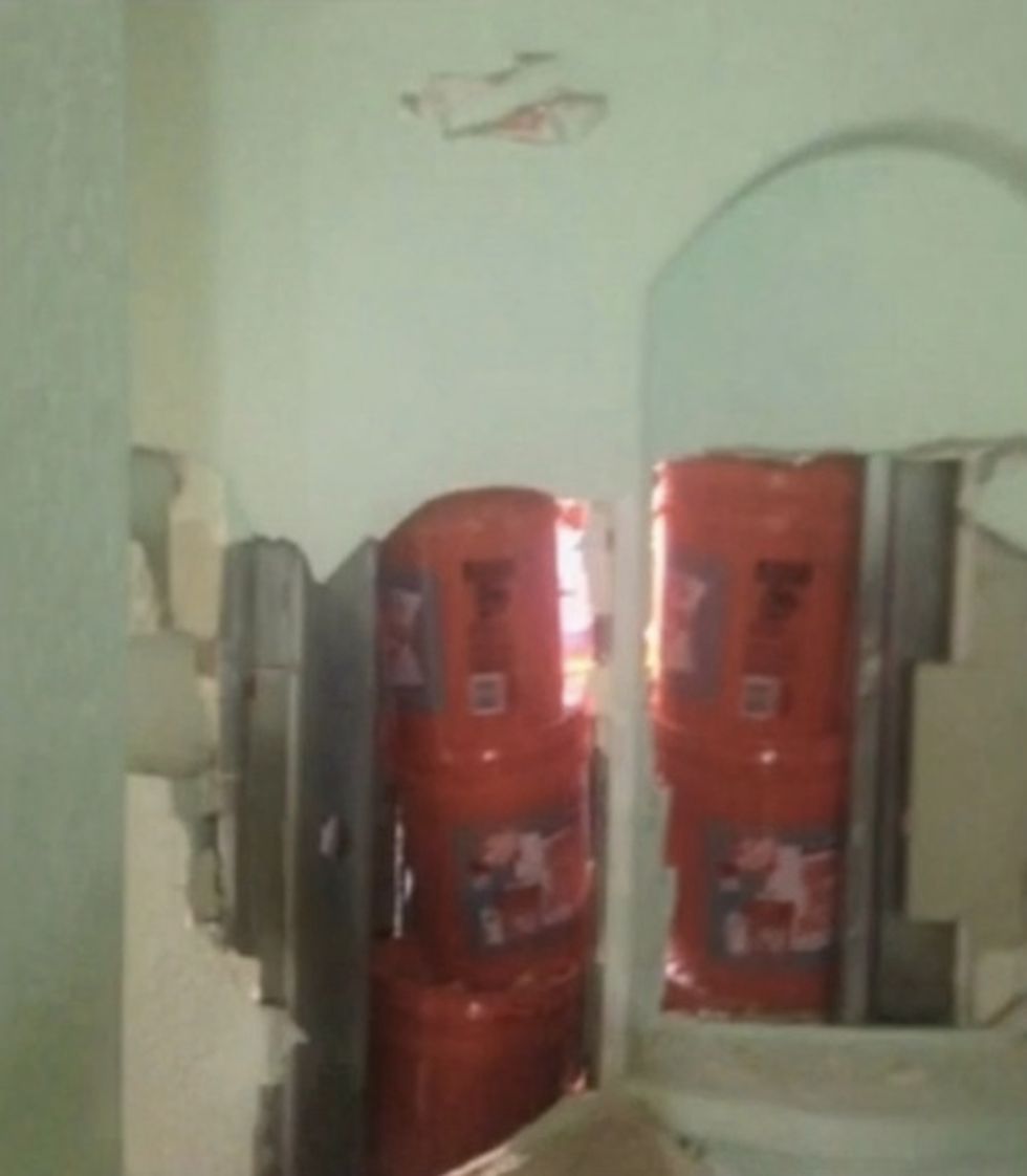 And it was there — past a statue of St. Lazarus and behind a wall — that detectives on Wednesday found a secret compartment holding a stash of orange five-gallon buckets.