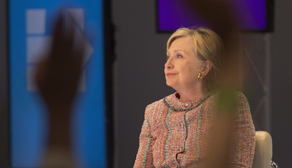 Democratic presidential candidate Hillary Clinton gestures as she speaks during a rally in Raleigh, N.C., Wednesday, June 22, 2016. (AP Photo/Chuck Burton)
