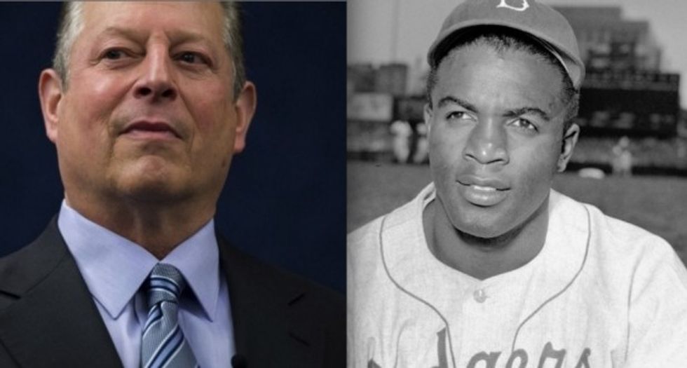 Noting criticism he's endured in his global warming crusade, former Vice President Al Gore invoked the legendary Jackie Robinson — who broke Major League Baseball's color barrier — as a fellow "messenger" of a cause who met struggles and resistance along the way.