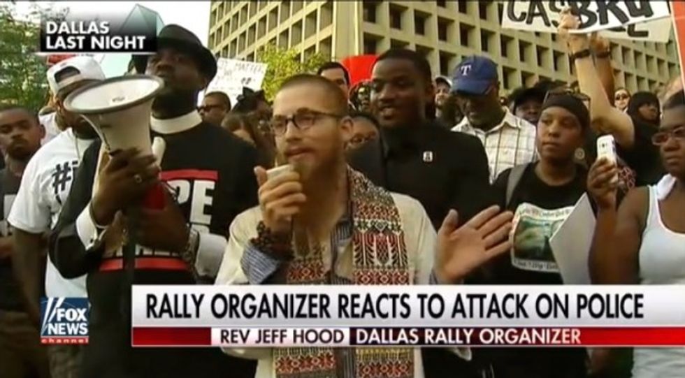 Rev. Jeff Hood of Dallas shouted "God damn White America" hours before the deadly attack Thursday that killed five police officers. Hood, a key organizer of Thursday's anti-police brutality protest in Dallas, later condemned the tragic shootings at a press conference Friday morning. But critics were quick to recall his provocative comments.