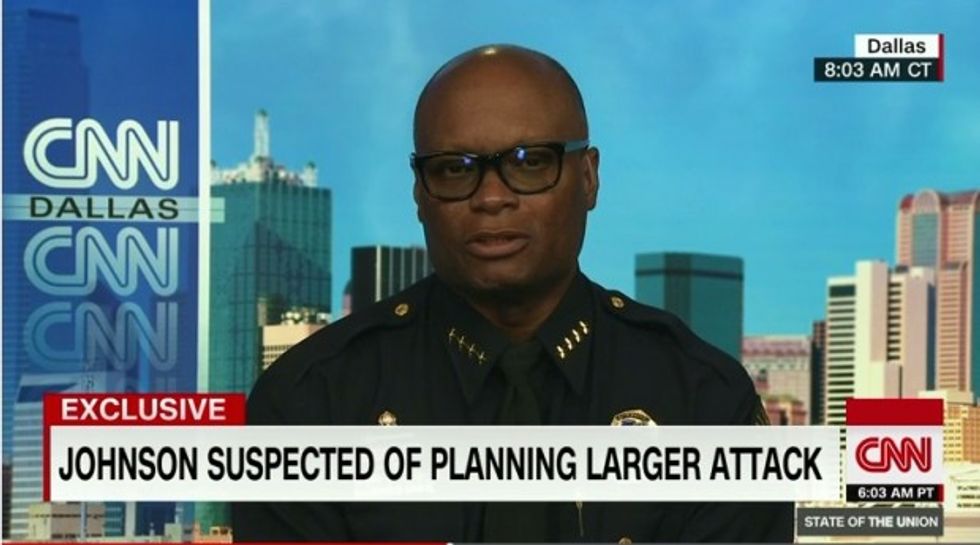 "We're convinced that this suspect had other plans and thought that what he was doing was righteous and believed that he was going to target law enforcement — make us pay for what he sees as law enforcement's efforts to punish people of color," Brown told CNN's Jake Tapper Sunday on "State of the Union."