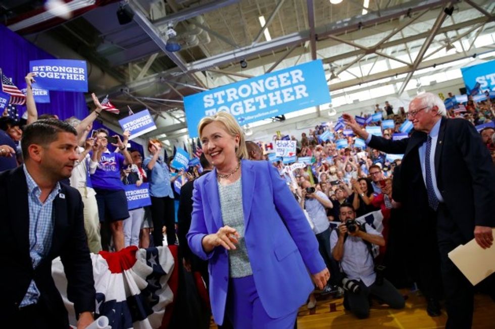 "Hillary Clinton will make an outstanding president and I am proud to stand with her here today," Sanders said after the pair walked into the high school together.