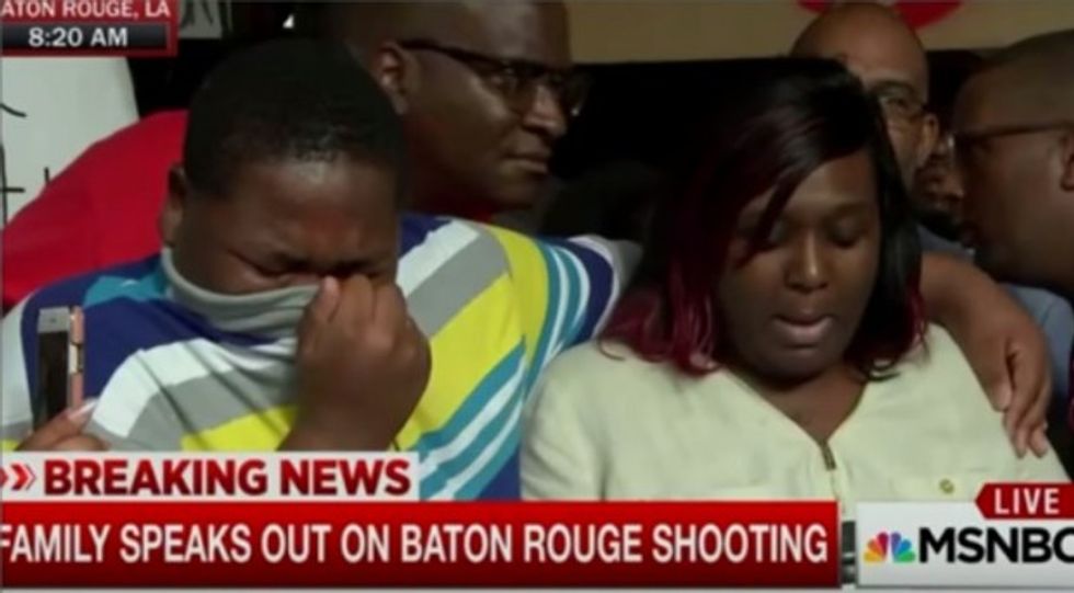 As Cameron Sterling's mother, Quinyetta McMillon, addressed the public following Alton Sterling's death, Cameron Sterling broke down.
