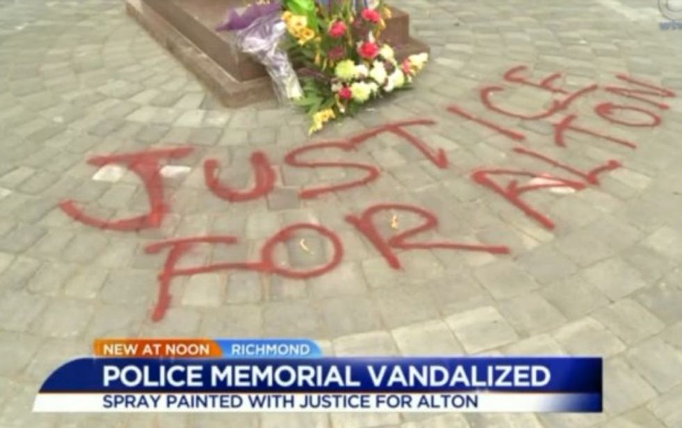 Police Memorial Vandalized With the Phrase 'Justice for Alton' Spelled Out in Red Paint