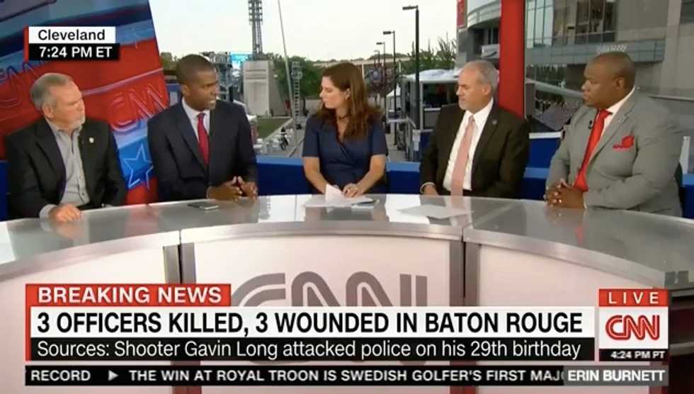 Sellers' comments came after Erin Burnett, who hosted a panel discussion Sunday on the attack's aftermath, suggested that the shootings in Dallas and Baton Rouge are part of a growing anti-police sentiment among young black men. CNN law enforcement analyst Art Roderick agreed with Burnett, adding that the recent events have prompted law enforcement authorities across the country to be extra vigilant.