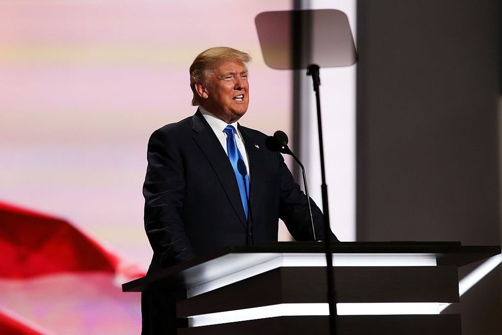 Donald Trump speaks at the Quicken Loans Arena in Cleveland, Ohio. (John Moore/Getty Images)