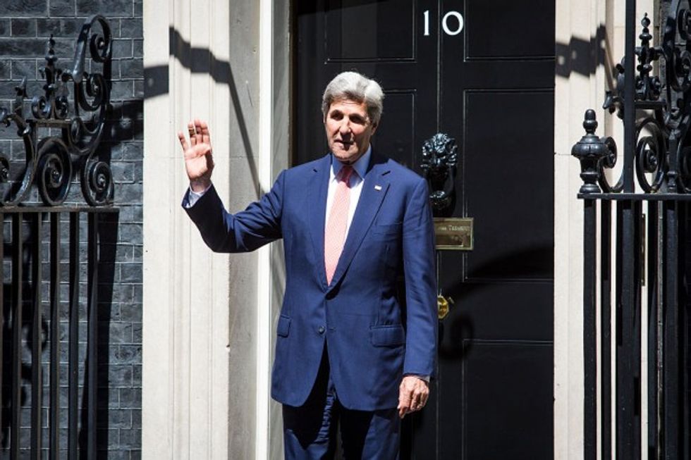 US Secretary of State John Kerry waves in front of Number 10 Downing Street on July 19, 2016 in London, United Kingdom. (Jack Taylor/Getty Images)