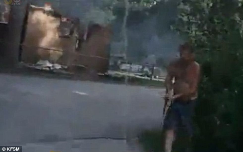 Randy Blecher, 50, used lighter fluid to set fire to his house and yard in Farmington, Arkansas, according to KSFM-TV. When officers arrived on scene, Blecher was outside with one handgun and a shotgun.
