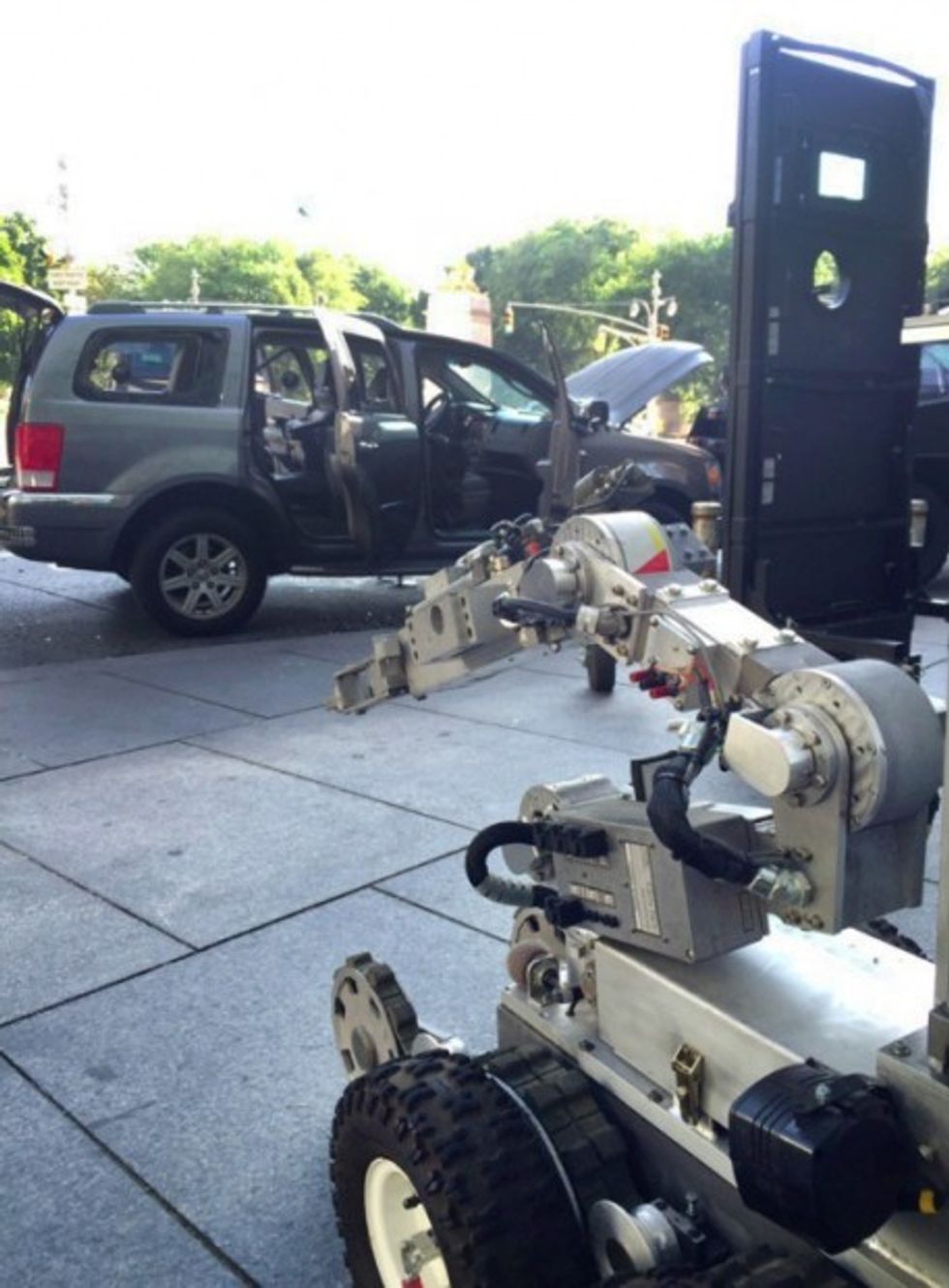 The standoff ended around 8 a.m. after police sent a robot to check out the man's SUV because they didn't know what was inside it.