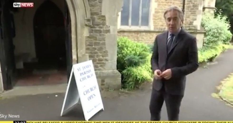 Martin Brunt, a crime correspondent for Sky News, visited an English church to see if they had added any additional security measures in the wake of a terrorist attack at a French church Tuesday.