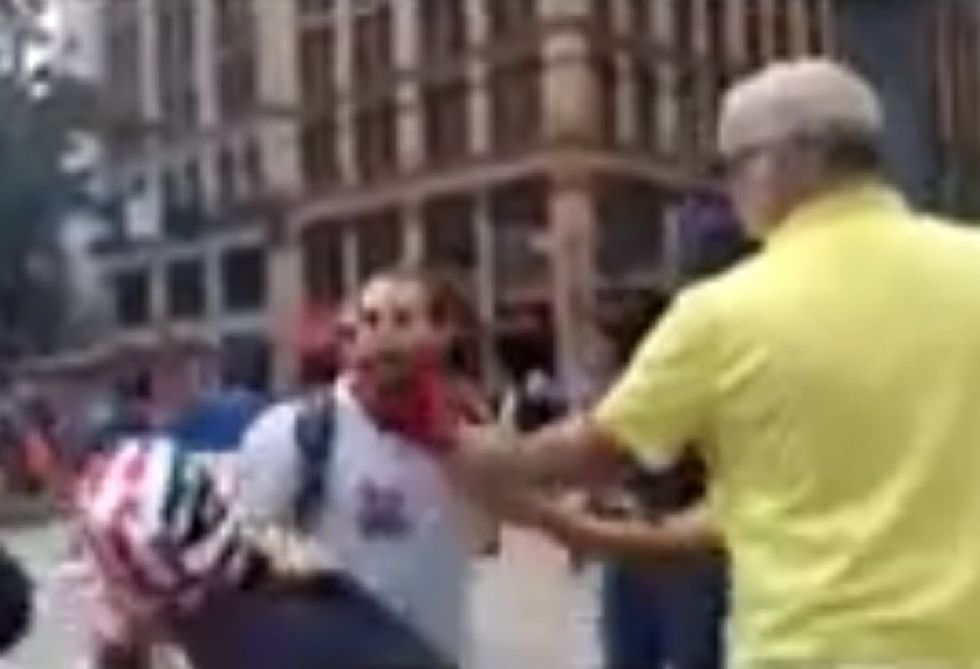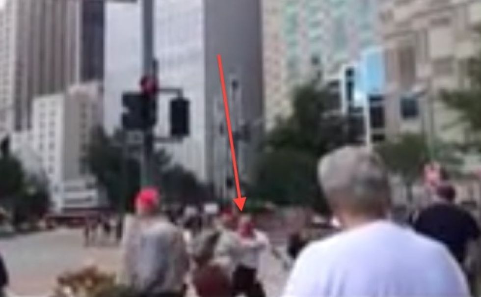 Fearing for the group's safety, one of the Trump supporters — 68-year-old Richard Dillon, wearing a backpack in the below photo — tried grabbing the flag from the man who police identified as 23-year-old Joshua Sturman.