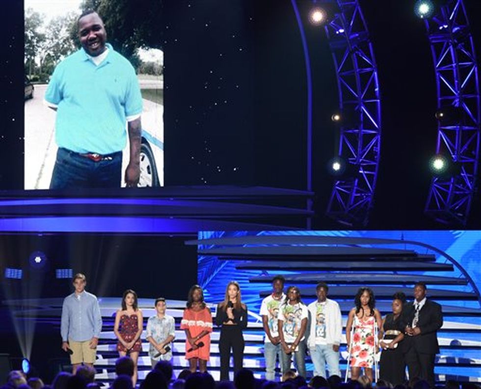 Justin Timberlake also brought seriousness to the otherwise silly ceremony. He was bestowed by Kobe Bryant with the show's version of a lifetime achievement award. The singer-actor used his moment in the spotlight to honor late boxer Muhammad Ali, address the importance of diversity and impart wisdom to the young crowd gathered at the Forum in Inglewood, California.