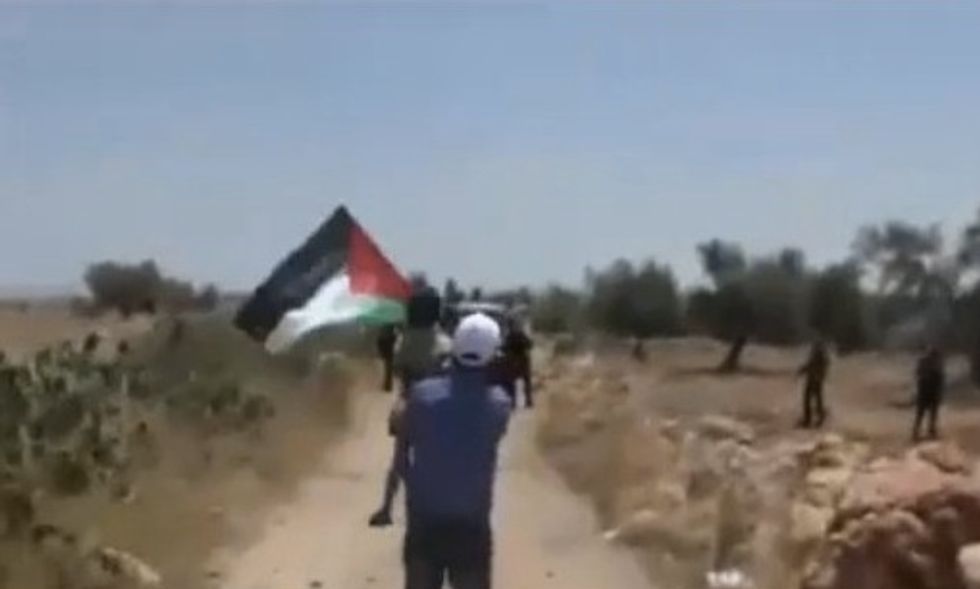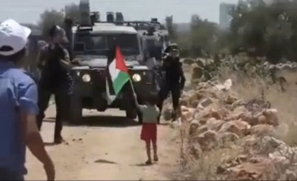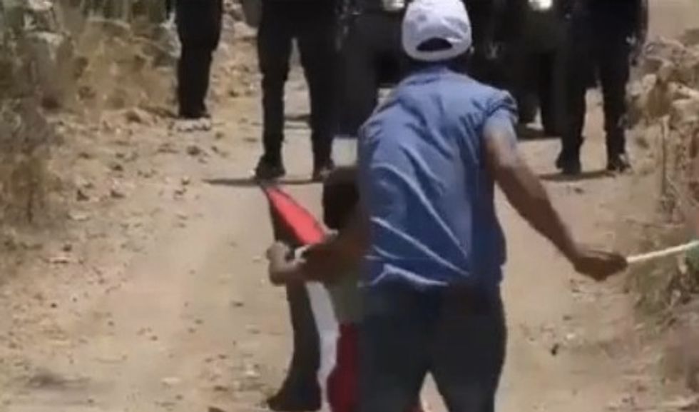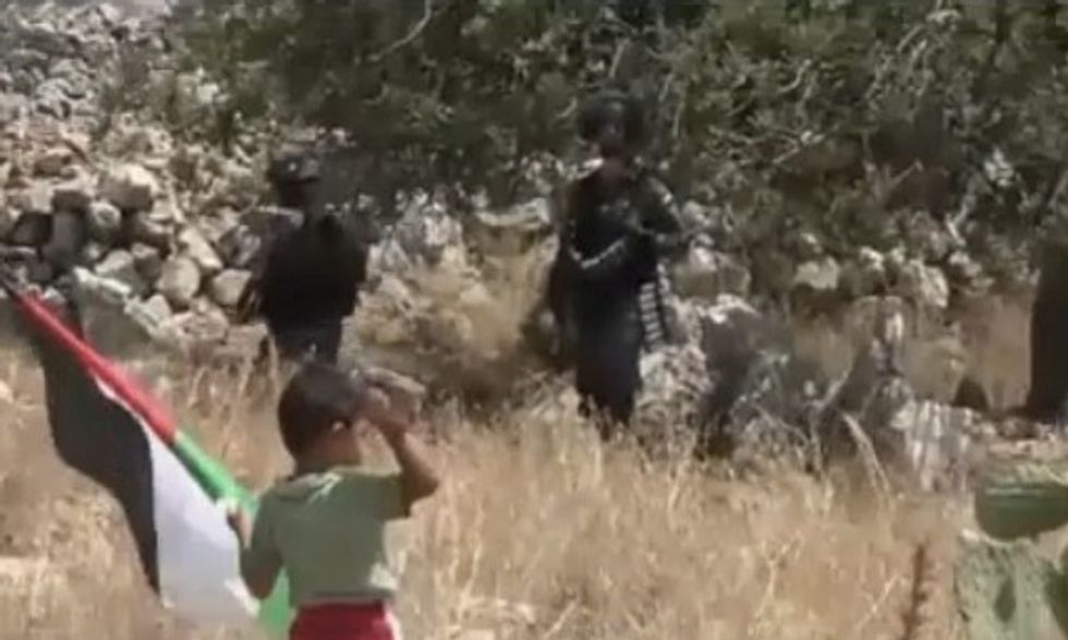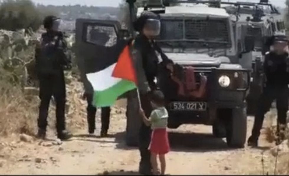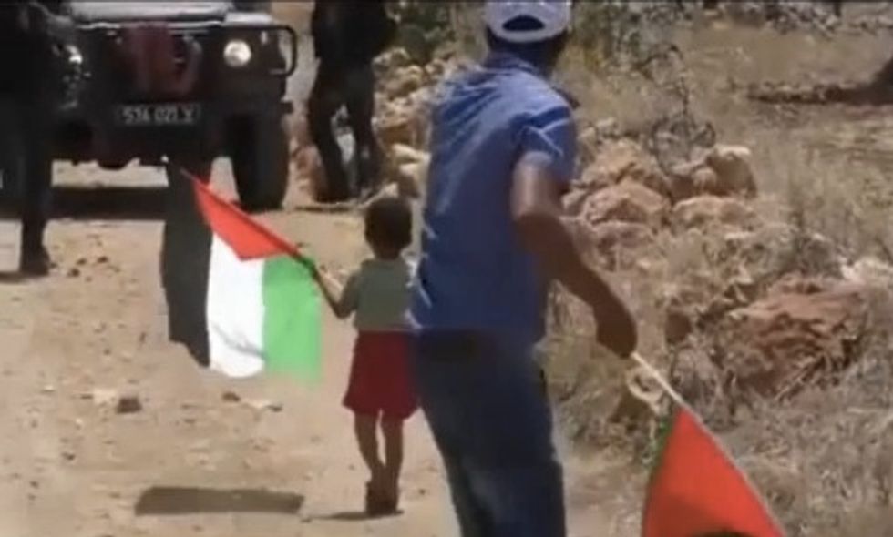 A video making the rounds on social media allegedly shows a man goading a toddler boy to walk up to Israeli border police and wave a Palestinian flag and throw stones at them, CNS News reported.