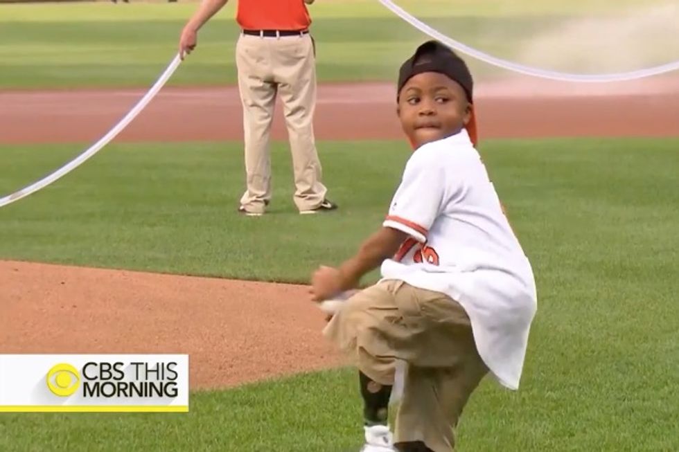 Tuesday night, the young man delivered the ceremonial first pitch before a Baltimore Orioles game at Camden Yards.