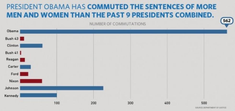 "All of the individuals receiving commutation today — incarcerated under outdated and unduly harsh sentencing laws — embody the president's belief that 'America is a nation of second chances,'" White House counsel Neil Eggleston wrote on the White House’s blog.