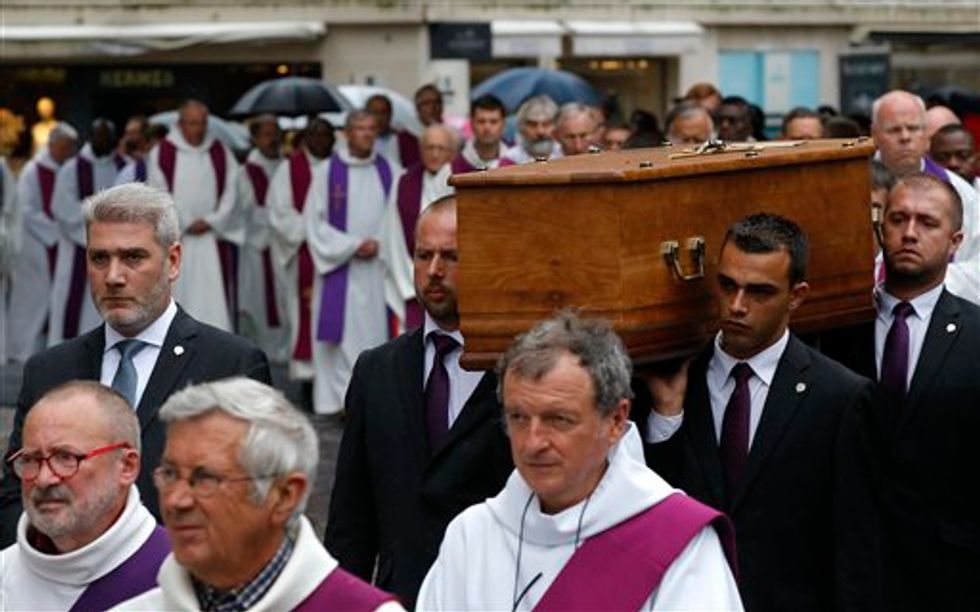 ROUEN, France (TheBlaze/AP) — The archbishop of Rouen led a solemn funeral Mass Tuesday for an elderly priest slain a week ago by two Islamic State extremists. During the ceremony, attendees learned the last words that the Rev. Jacques Hamel said to his murderers as he tried to push them away with his feet.
