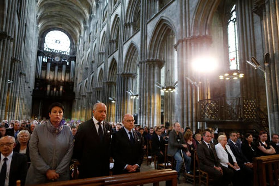 Hundreds of priests and bishops filled the sumptuous Rouen cathedral alongside several hundred people, including Muslims who have joined in the grieving since the brutal attack that occurred as the priest celebrated morning Mass.