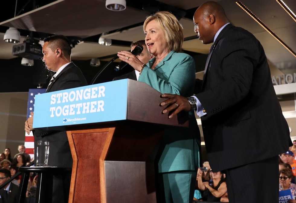 Clinton Surrounded by Secret Service When Activists Try Jumping Rally Stage. She Then Uses Moment to Rip Trump.