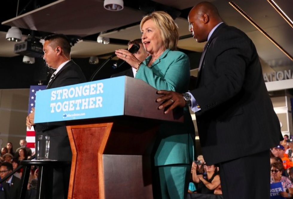 CNN reported the protesters "approached" Clinton. It isn't clear what, if anything, happened to the protesters. But CNN said four Secret Service agents quickly surrounded Clinton, adding that she "never appeared to be in danger."
