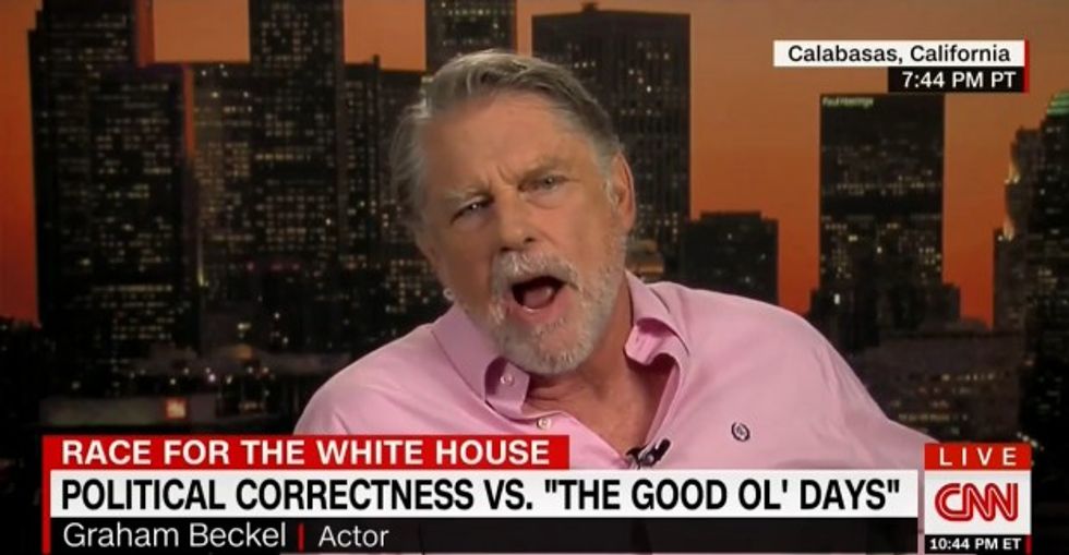 Actor Graham Beckel, the brother of outspoken liberal commentator Bob Beckel, passionately defended Clint Eastwood’s remarks on Trump and political correctness during a Thursday panel discussion on CNN.