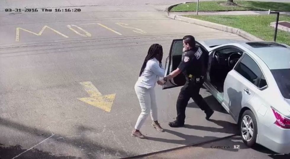 Surveillance video released of a Texas woman's arrest in March has been released, reigniting controversy over the altercation between the black woman and police officer.