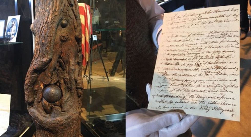 Other artifacts included the deed to George Washington's Mount Vernon estate located just outside Washington, D.C., a cannon-stricken tree log from the Battle of Gettysburg, a handwritten letter to John Hancock from his lawyer, William Milton, and one of President Barack Obama's family photo albums.