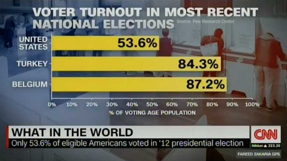 With a 53.6 percent voter turnout in the 2012 election, American voters are well behind several developed nations when it comes to participating in the selection our leaders.