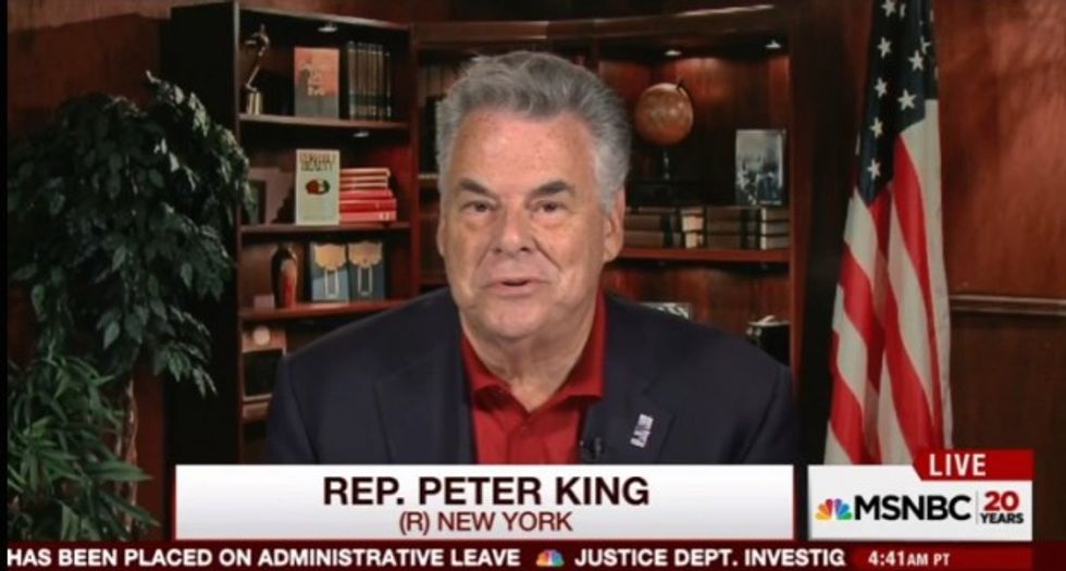 Rep. Peter King, (R-N.Y.), appeared on MSNBC's "Morning Joe" Wednesday morning to discuss Donald Trump's controversial comments regarding Hillary Clinton and the Second Amendment.