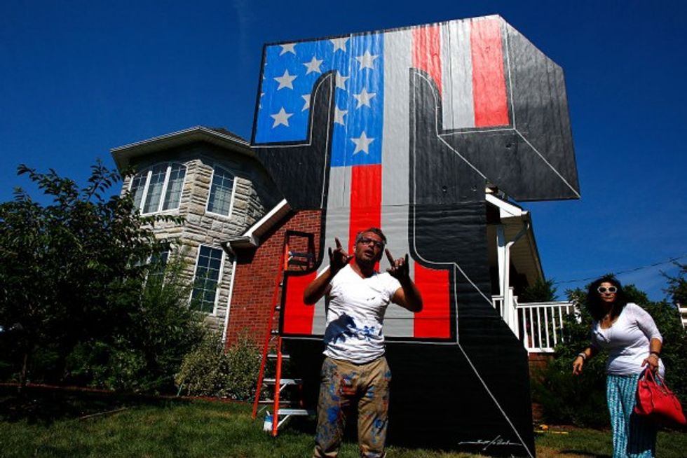 Nevertheless, Pirozzolo and the sign's creator, artist Scott Lobaido, have constructed an identical, but even larger, sign to send the arsonist a bold message. For Lobaido, the "T," meant to represent the Republican presidential nominee's last name, is more than a sign. He says it's a work of art.