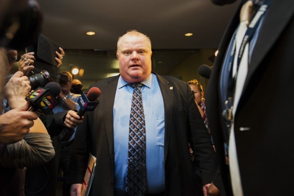 Toronto Mayor Rob Ford is swarmed by media at City Hall after City Council striped him of emergency management powers on November 15, 2013 in Toronto, Canada. (Aaron Vincent Elkaim/Getty Images)