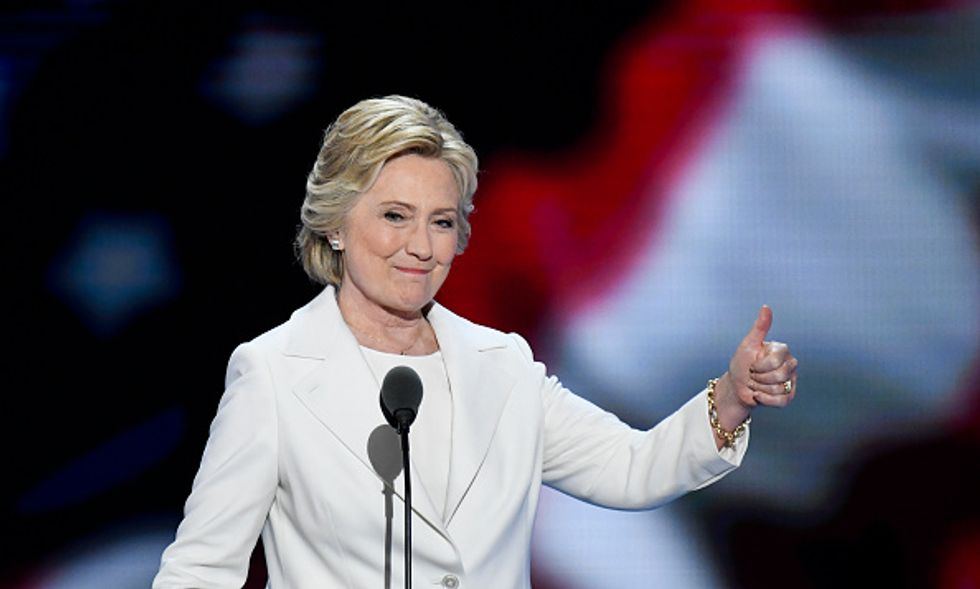 Hillary Clinton accepts the nomination on the final night of the Democratic National Convention at the Wells Fargo Center, July 28, 2016 in Philadelphia, Pennsylvania. (ROBYN BECK/AFP/Getty Images)