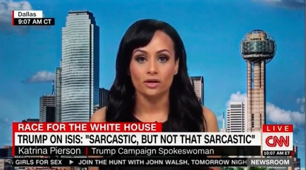 Donald Trump spokeswoman Katrina Pierson told CNN's Victor Blackwell Saturday morning that President Obama is responsible for the United States' presence in Afghanistan.
