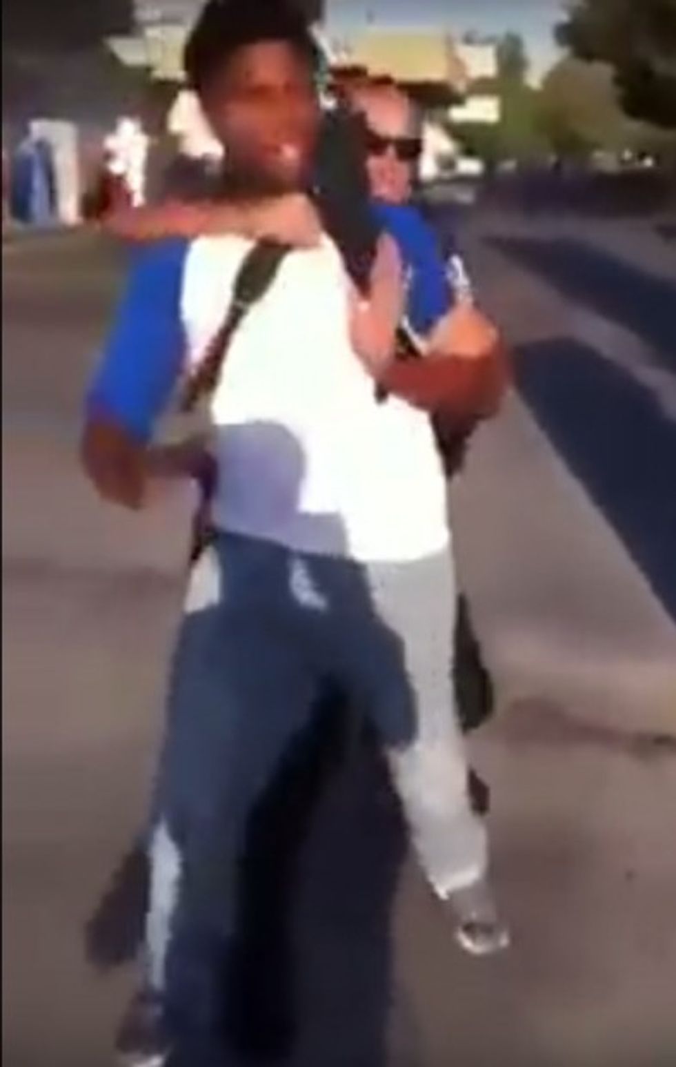 Another person yelled out, "They're f***in' with a little kid!" Another voice was heard yelling, "He's a high school student! And you're f***in' with him!"
