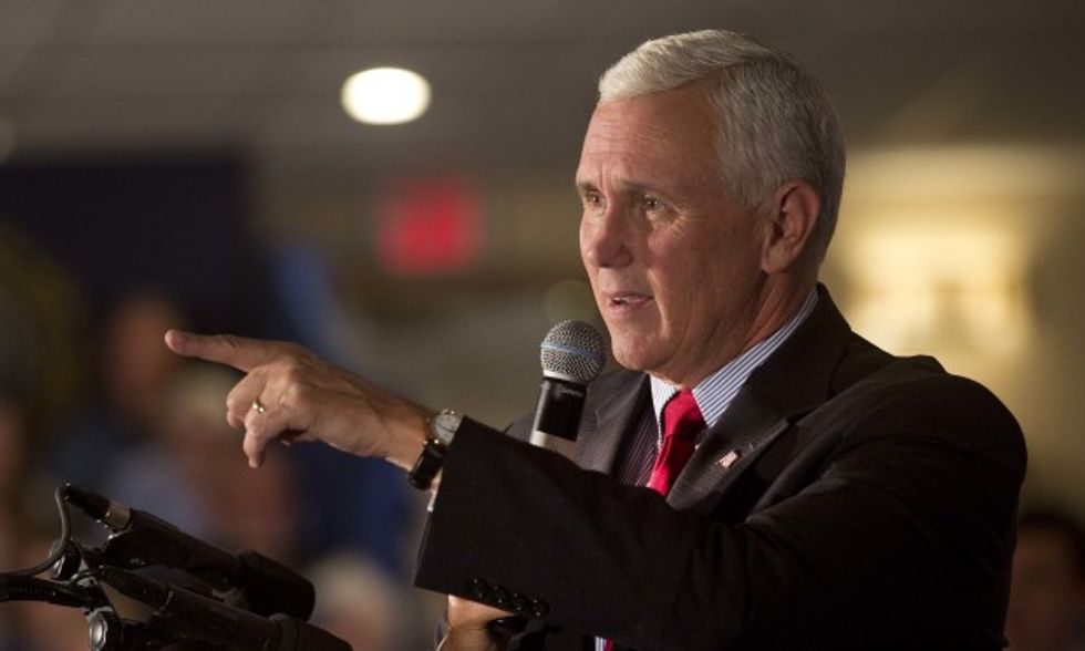 Republican vice presidential candidate, Indiana Gov. Mike Pence speaks during a town hall style meeting at the Executive Court Banquet Facility. Thursday Aug. 18, 2016. in Manchester, N.H. (AP Photo/Jim Cole)