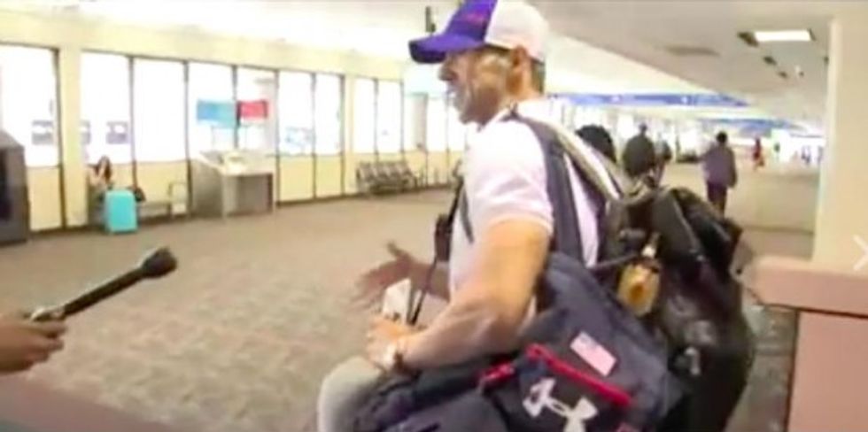 Phelps landed at Phoenix International Airport with his fiancee and his son when one local reporter from KTVK-TV caught up with them and asked Phelps how it felt to be home.