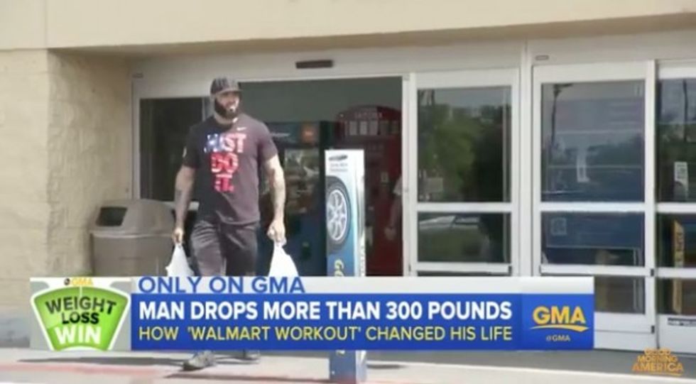 An Arizona man says he lost more than 300 pounds by walking back and forth to his local Walmart each time he wanted a meal, according to ABC News.