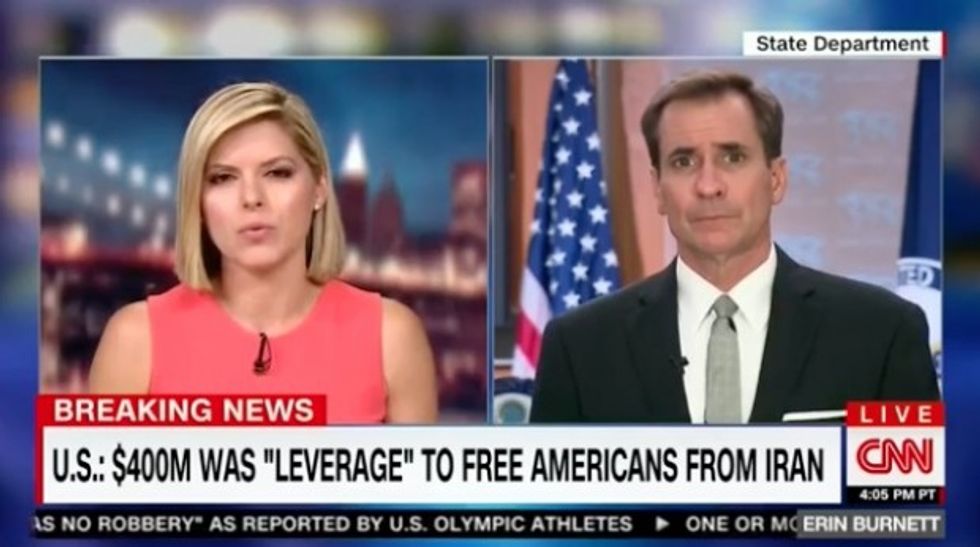 CNN’s Kate Bolduan asked Kirby, “Today you described it as leverage. The question also to you today was you wouldn’t give Iran the money until they released the prisoners and you said ‘correct.’ That seems pretty close to the definition of ransom. How is it not?”