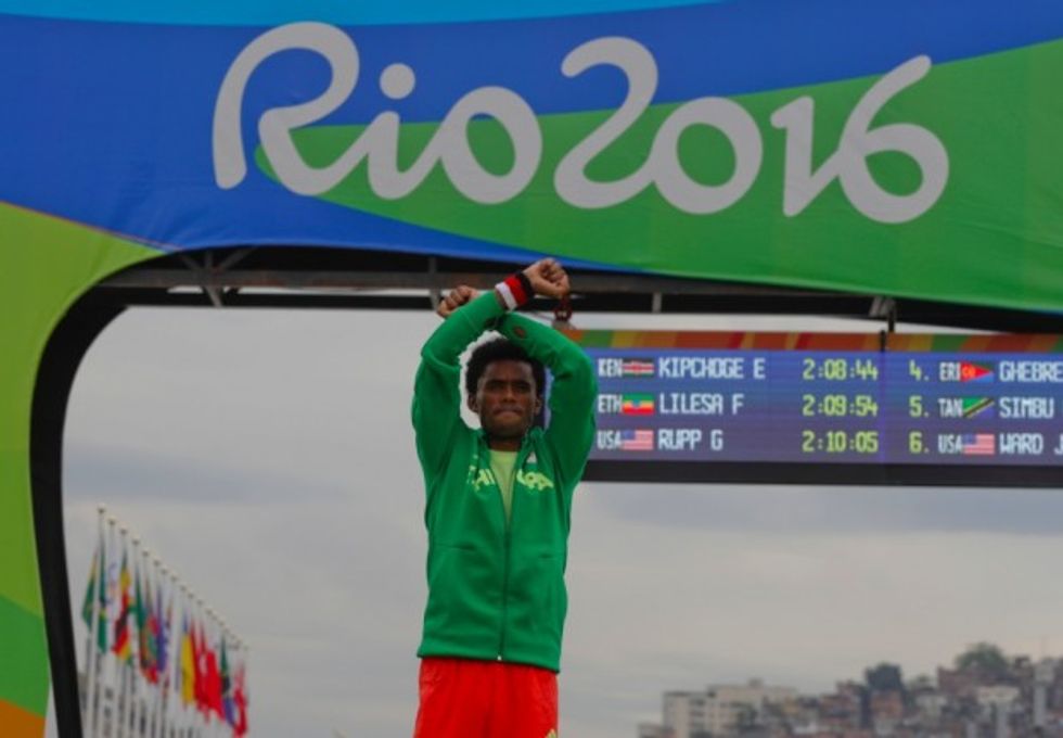 The silver medalist crossed his wrists in an attempt to draw global attention to deadly protests in his home region of Oromia. He told reporters that Ethiopia's government is killing his people and taking their resources.