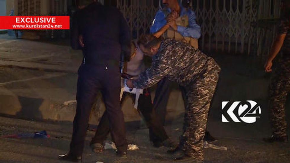 Local television footage aired on Kurdistan 24 TV shows a group of police officers holding the young boy while two men are seen cutting off a belt of explosives. After they remove the belt, the boy is seen being rushed into a police truck and driven away.