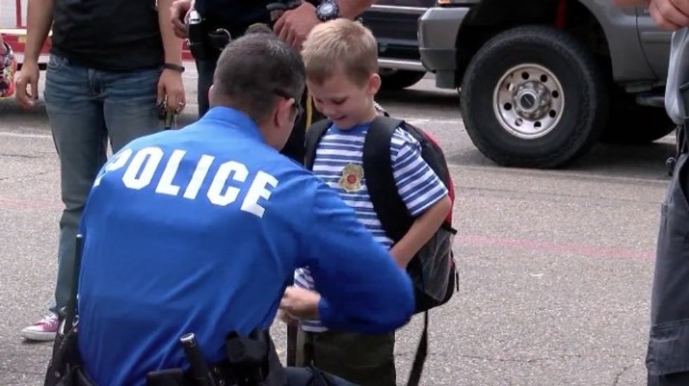 After losing his police officer dad, he has an army of stand-ins for this important first. #firstdayofschool2016 pic.twitter.com/BwtRMRuNmf