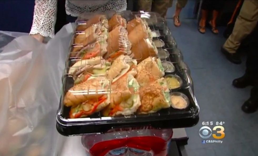 The first thing he did was head to Subway restaurant to get sandwiches for police officers in Winslow Township, a suburb of Philadelphia.