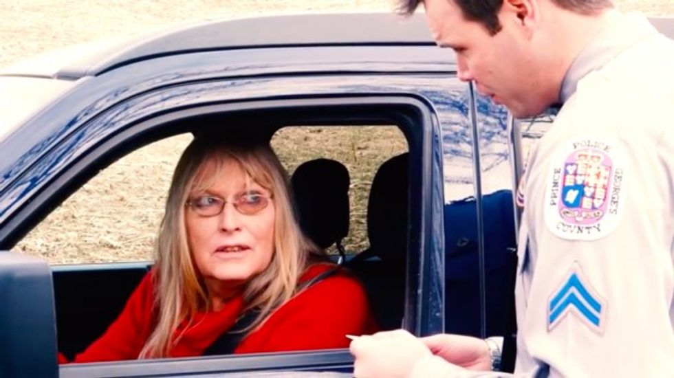 In one of the scenarios, a transgender woman calls the police to report an assault. Upon arriving, the two officers — a man and a woman — begin asking the individual about the incident. When the male officer sees the person's driver's license, he refers to the person by the unpreferred pronoun.