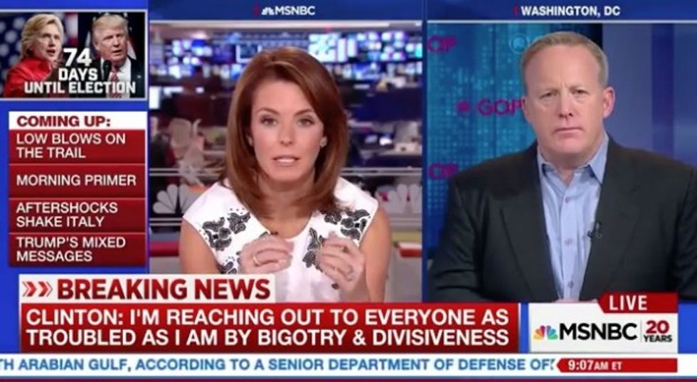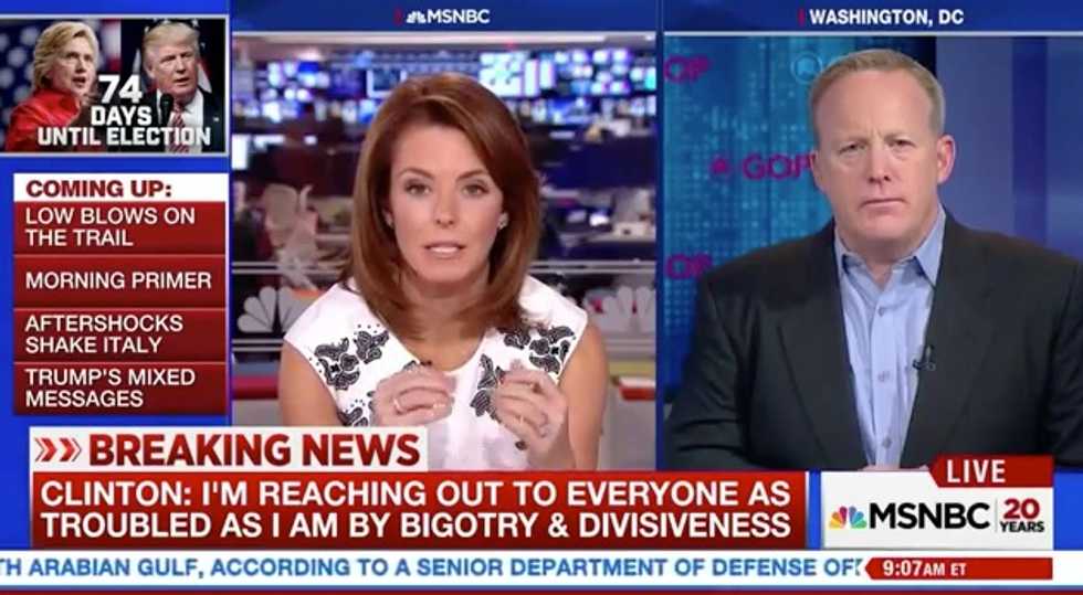 "Donald Trump called Hillary Clinton a bigot. That's not desperate?" Ruhle asked, adding that Spicer shouldn’t “pivot” to Clinton but answer her question about Trump.
