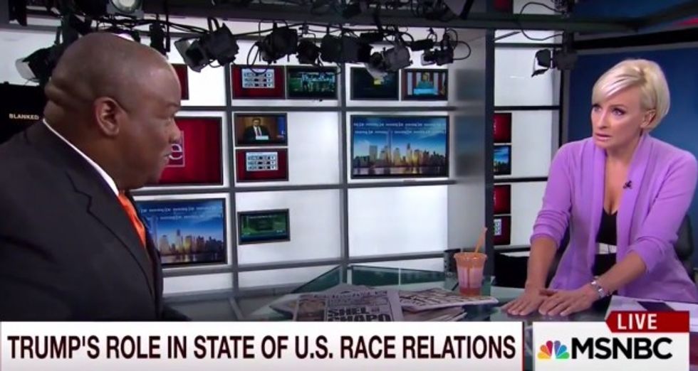 MSNBC's Mika Brzezinski on Friday interrupted and repeatedly pressed pro-Donald Trump black pastor Mark Burns on whether the Republican presidential nominee's comment about a U.S. district judge was "racist" — and Burns finally had enough.