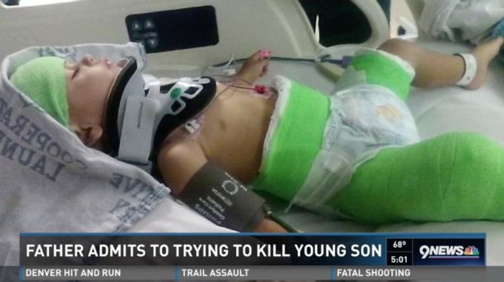 A toddler was left covered by casts on half of his body after his father allegedly attempted to kill him earlier this month, according to KUSA-TV.