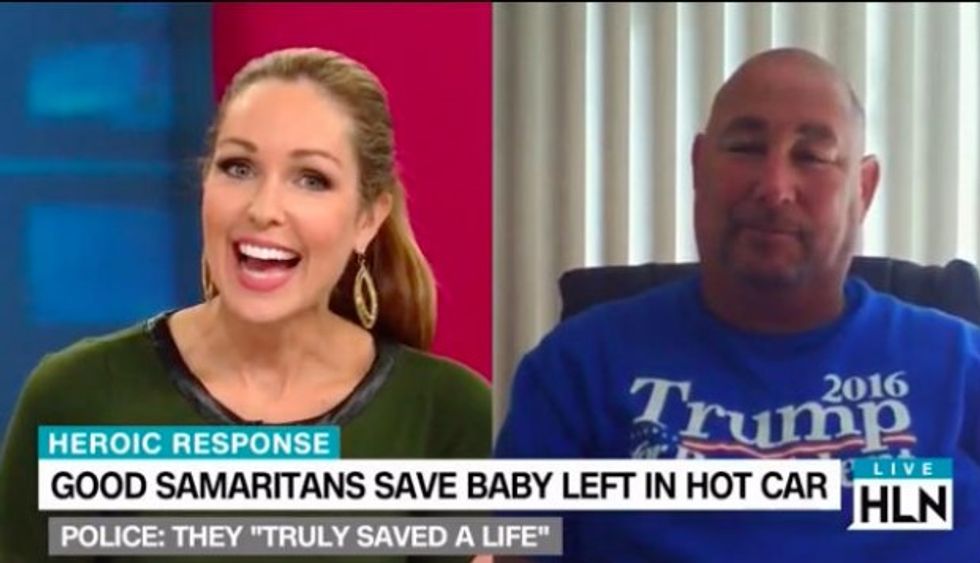 The retired New Jersey police officer who saved a baby locked in a hot car has been making the media rounds, including on HLN.
