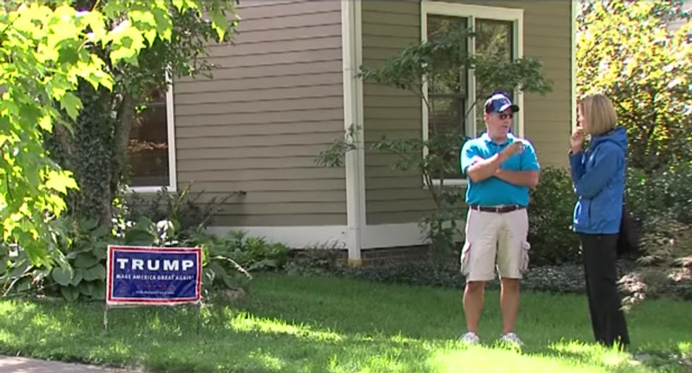 Woman Caught on Video Trying to Steal Man's Front Yard Trump Sign — but Karma Is Swift
