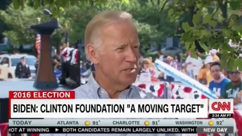 Biden, asked if Clinton has been clear about scandals involving her use of a private email server while she was secretary of state and the Clinton Foundation, said that the foundation has been a “moving target.”
