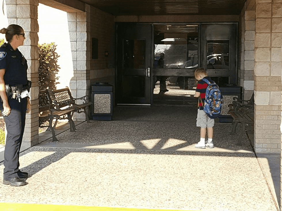 At first, the Texas mother was unsure what her 5-year-old son was doing, but once she found out, she quickly snapped a photo, posted it to Facebook, and now it's going viral.