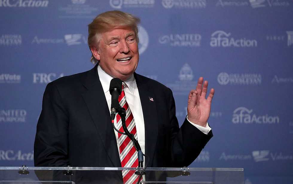 Republican presidential candidate Donald Trump addresses the Values Voter Summit at the Omni Shoreham on Friday in Washington, D.C. (Chip Somodevilla/Getty Images)